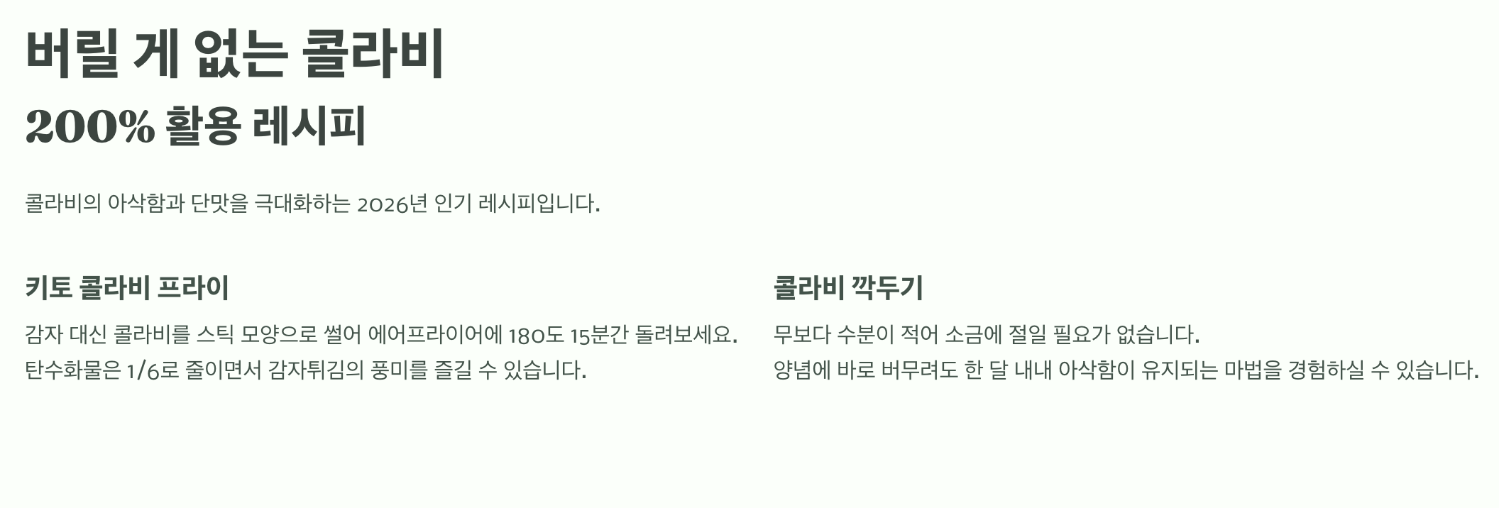 콜라비의 아삭함과 단맛을 극대화하는 2026년 인기 레시피입니다.